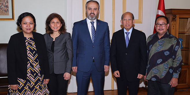 Endonezya Büyükelçisi Wardana, Bursa programı kapsamında Büyükşehir Belediye Başkanı Alinur Aktaş'ı Tarihi Belediye Binası'nda ziyaret