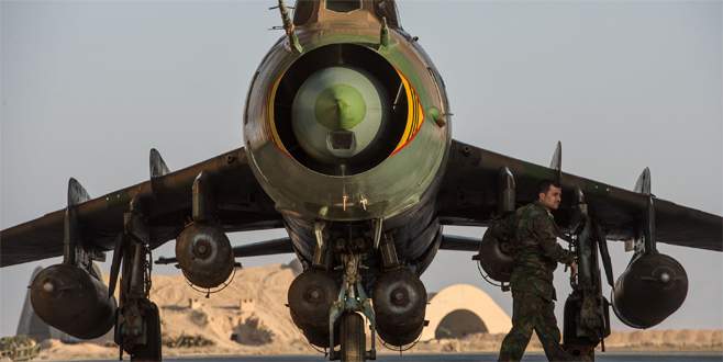 ABD öncülüğündeki koalisyon güçlerinin Rakka'da YPG mevzilerini bombalayan Suriye hava kuvvetlerine ait Su-22 savaş uçağını