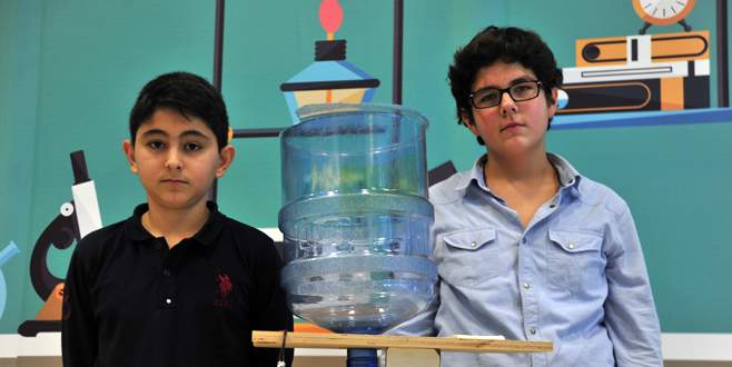 İki ortaokul öğrencisi, hazırladıkları proje kapsamında çatıya yerleştirilen depoda biriken yağmur suyunu kullanarak elektrik enerjisi