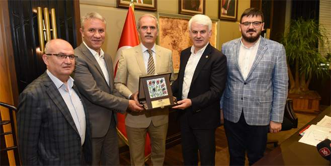 AK Parti Bursa Milletvekili Hüseyin Şahin ve İMOS Başkanı Yavuz Uğurdağ Bursaspor Kulübü'nü ziyaret etti.