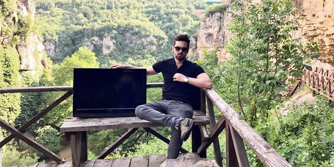 Yeni televizyonuyla tatile çıktı