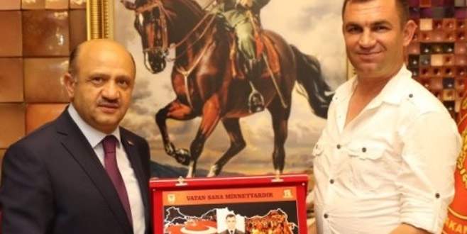15 Temmuz gazisi Yenişehirli Cüneyt Osman Gül, Millî Savunma Bakanı Fikri Işık’ın elinden takdir belgesi