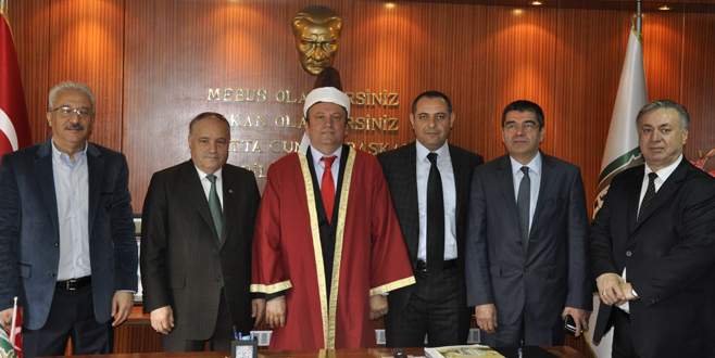 Nilüfer Belediye Başkanı Mustafa Bozbey, Bursa Esnaf ve Sanatkarlar Odaları Birliği Başkanı Arif Tak'ı makamında