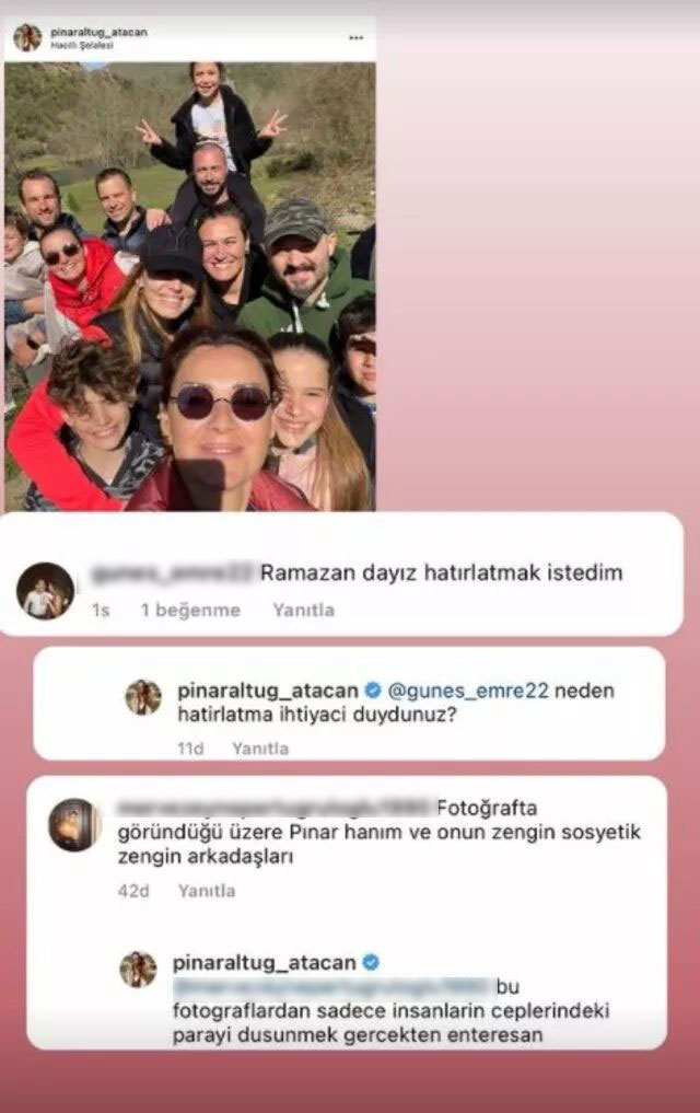 Pınar Altuğ’a gelen yorumlardan biri “Ramazandayız hatırlatmak istedim” oldu.