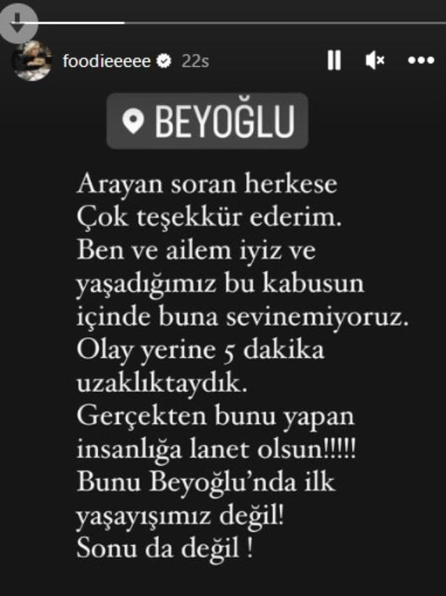 Dün saat 16.20 civarında İstanbul İstiklal Caddesi’nde bir patlama meydana geldi. Beton saksıya bitişik banka bırakılan bomba ikisi çocuk 6 kişiyi hayattan koparırken 81 vatandaşımız yaralandı. Tarlabaşı’nda dükkanı bulunan eski MasterChef Türkiye yarışmacısı Burcu Önal ise yaşadığı korkuyu anlattı.
