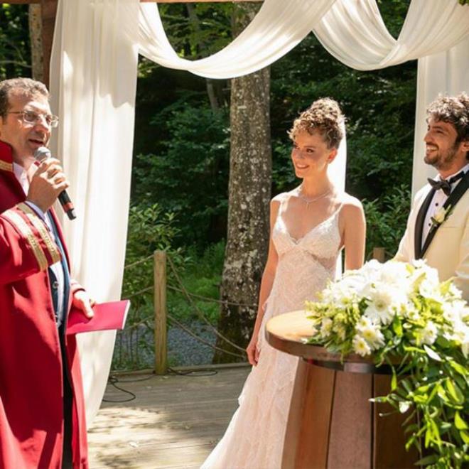 Genç çiftin nikahları da İstanbul Büyükşehir Belediye Başkanı Ekrem İmamoğlu tarafından kıyıldı.