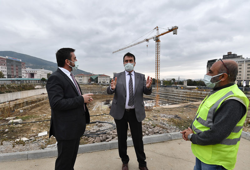 Başkan Dündar, makamdaki ziyaretin ardından Kestel Belediye Başkanı Önder Tanır’a Osmangazi Meydanı şantiyesini gezdirdi. Şantiye alanında dev meydan inşaatı hakkında bilgiler veren Başkan Dündar, Tanır’ın proje hakkında merak ettiği soruları da cevapladı. Dündar, “Önder Başkan, mimar olduğu için inşaat işlerini çok iyi bilen birisi. Hem belediye başkanı hem de bir mimar olarak Osmangazi Meydanı’ndaki inşaat çalışmalarını gelip görmesini istedik. 1,5 yıldır sürdürdüğümüz hafriyat çalışmalarını tamamladık. Zemin kotuna inerek temel için beton dökmeye başladık. Bundan sonraki süreçte inşaat daha da hızlanacak. Şimdiye kadar yerin altına doğru bir çalışma yaptık. Artık inşaat yukarı doğru çıkacak” diye konuştu.