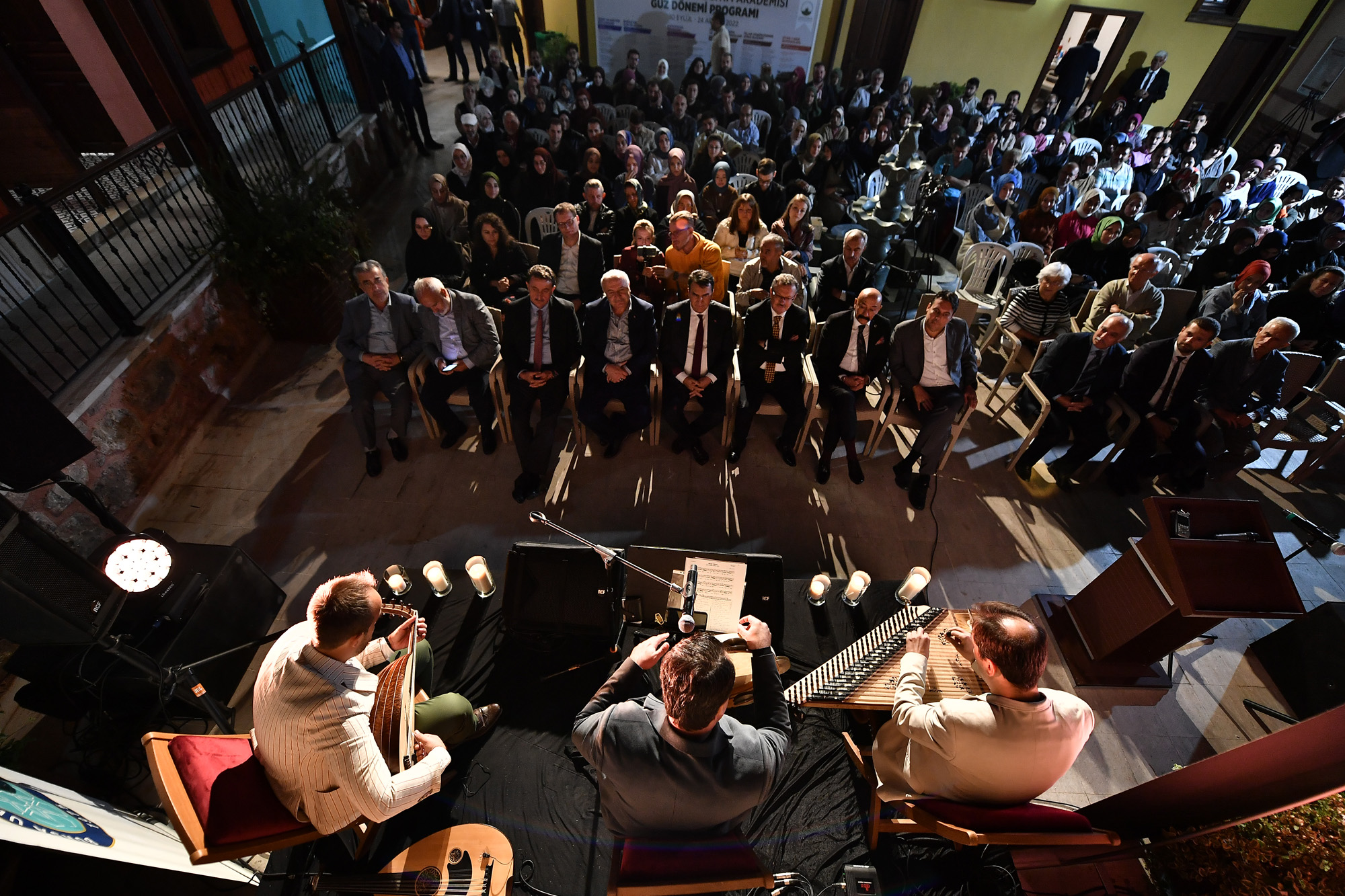 Şadırvanlı Han Eğitim Akademisi 2022 Yılı Güz Dönemi etkinlik takviminin açıklanmasının ardından sahneye çıkan ud sanatçısı Cüneyt Arslan, kanun sanatçısı Oğuz İmrak ve solist Salih Taşkın, “Balkanlar’dan Kerkük’e Türkülerimiz” temalı konser ile Bursa’dan Üsküp ve Kerkük’e kadar geniş bir coğrafyanın türkülerini seslendirdi. Konser sırasında mikrofonu eline alan Uludağ Üniversitesi Rektörü Prof. Dr. Ahmet Saim Kılavuz da, ‘Dönülmez Akşamın Ufkundayız’ eserini söyledi.