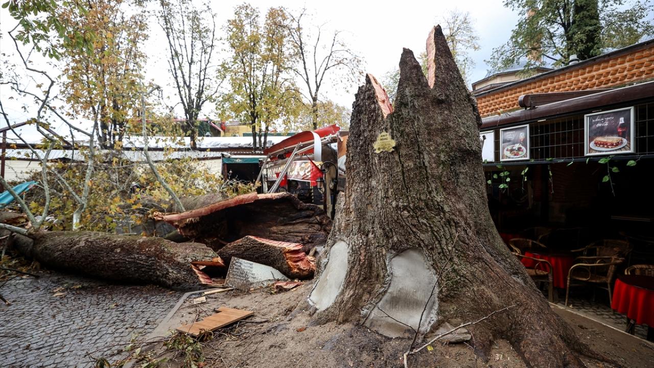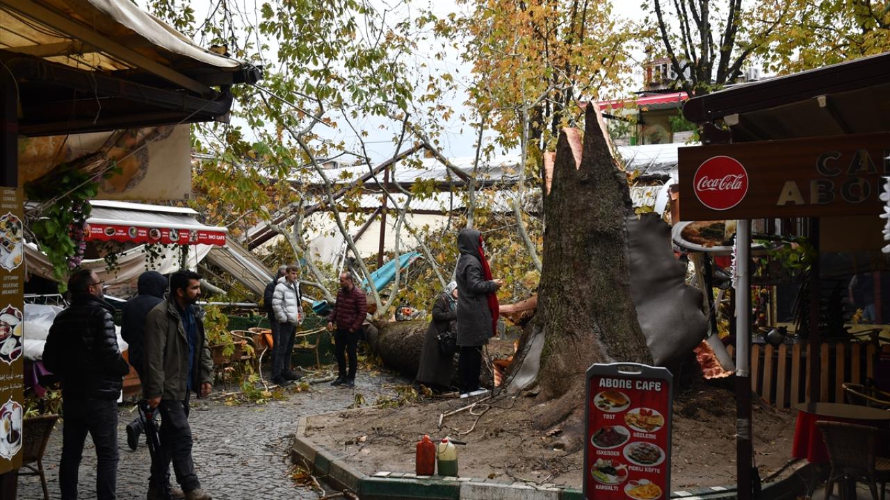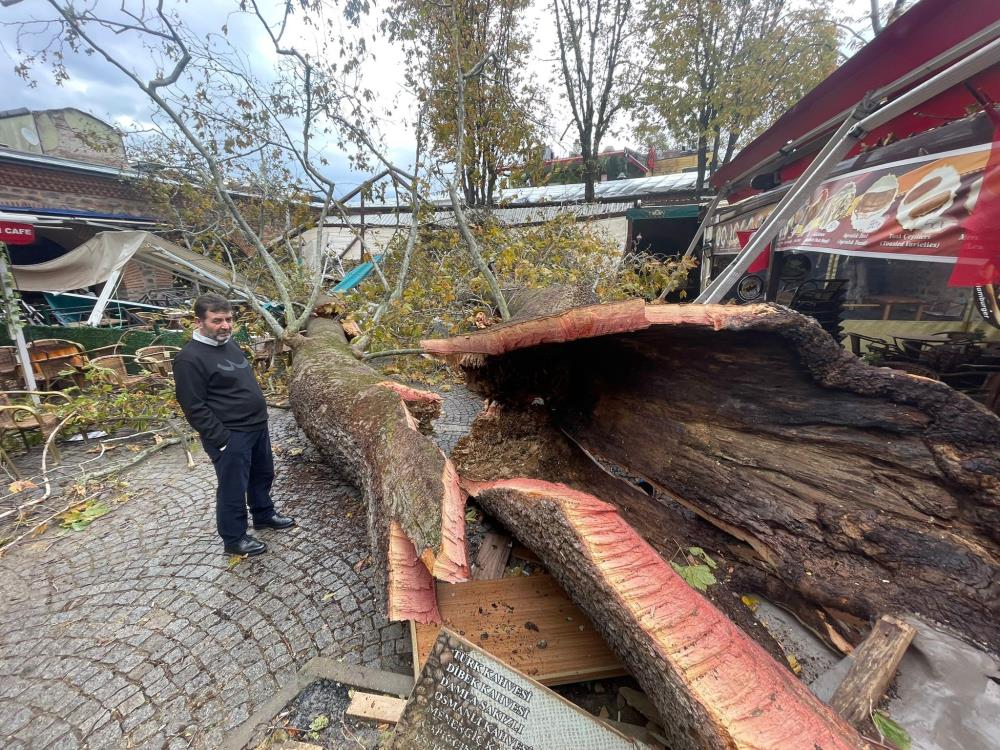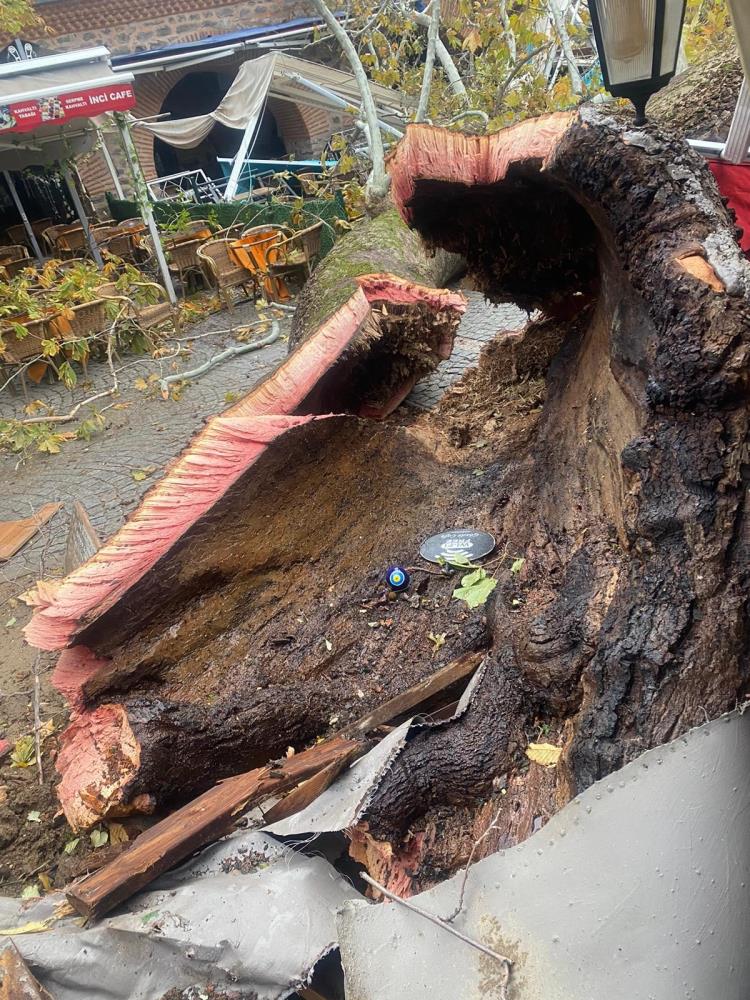 Handaki kafe işleten esnaf ise çınarın yerle bir olduğunu belirterek, “Allah’tan gece yaşandı. Eğer iş yerlerimizin açık olduğu saatte yıkılsaydı manzara farklı olurdu “dedi.