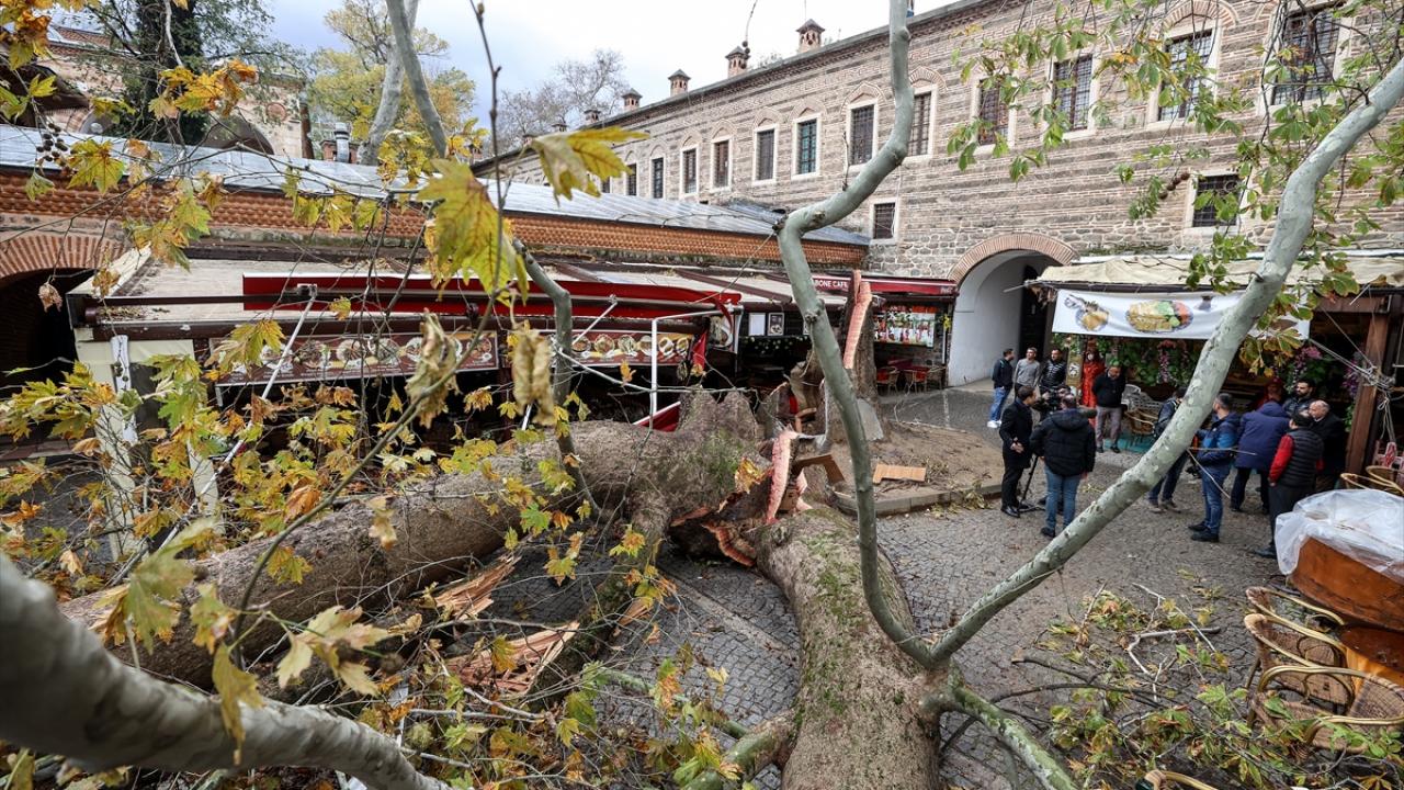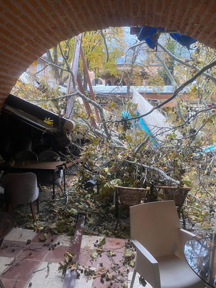 Kafelerin bulunduğu ve közde kahve ile meşhur olan İç Koza Han’daki devasa çınar saatteki hızı 100 kilometreye ulaşan fırtınaya dayanamadı.