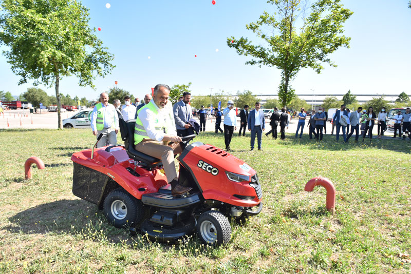 Başkan Aktaş, konuşmasının ardından çim biçme makinesine binip, çimleri sürdü. Daha sonra Büyükşehir ailesine yeni katılan personellerle sohbet etti.
