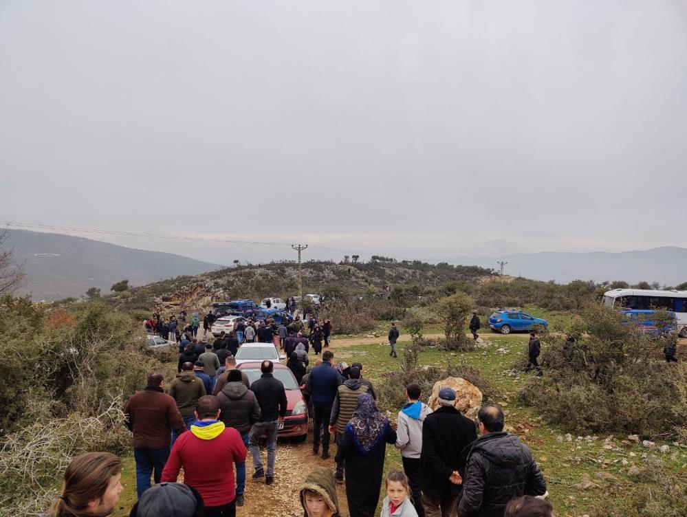 Mahalle meydanından “Tarım alanlarımız, hayvan meralarımız ve temiz bir doğa için taş ocağına hayır” yazılı pankart eşliğinde yaklaşık 2 kilometre mesafedeki yeni taş ocağı yapılacak alana yürüyen kadın ve çocukların da yer aldığı gurup burada açıklamalar yaptı.