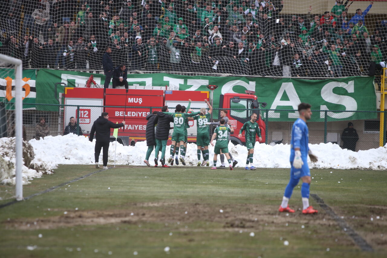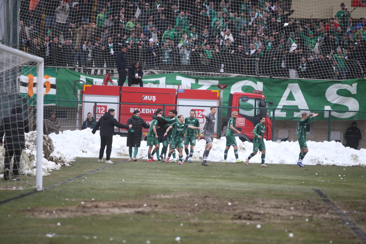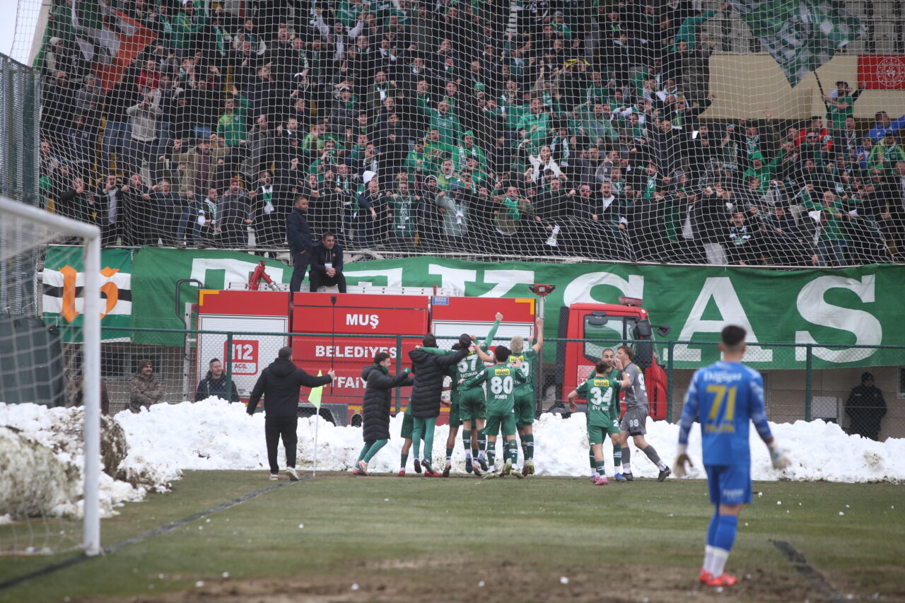 Yeşil beyazlı takım, Muş’ta çok kritik bir galibiyet elde etti… Bursaspor’u Muş’ta adım adım takip eden OLAY ekibinden Emre Kurtbay, sahada yaşanan taşlı, vidalı, kartopu saldırılarını, balçık sahadan çıkan 3 puanı anı anına fotoğrafladı… İşte o görüntüler…