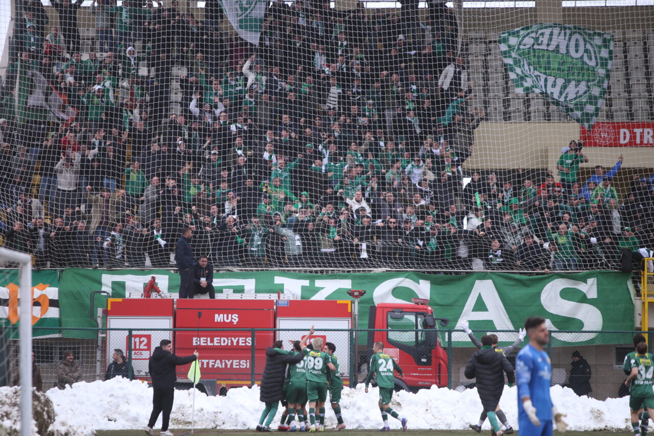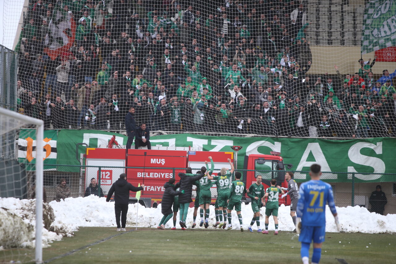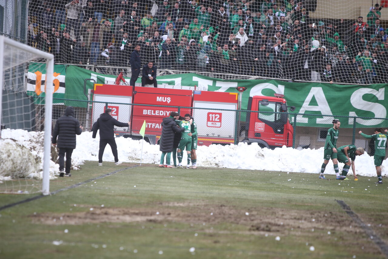 Yeşil beyazlı takım, Muş’ta çok kritik bir galibiyet elde etti… Bursaspor’u Muş’ta adım adım takip eden OLAY ekibinden Emre Kurtbay, sahada yaşanan taşlı, vidalı, kartopu saldırılarını, balçık sahadan çıkan 3 puanı anı anına fotoğrafladı… İşte o görüntüler…