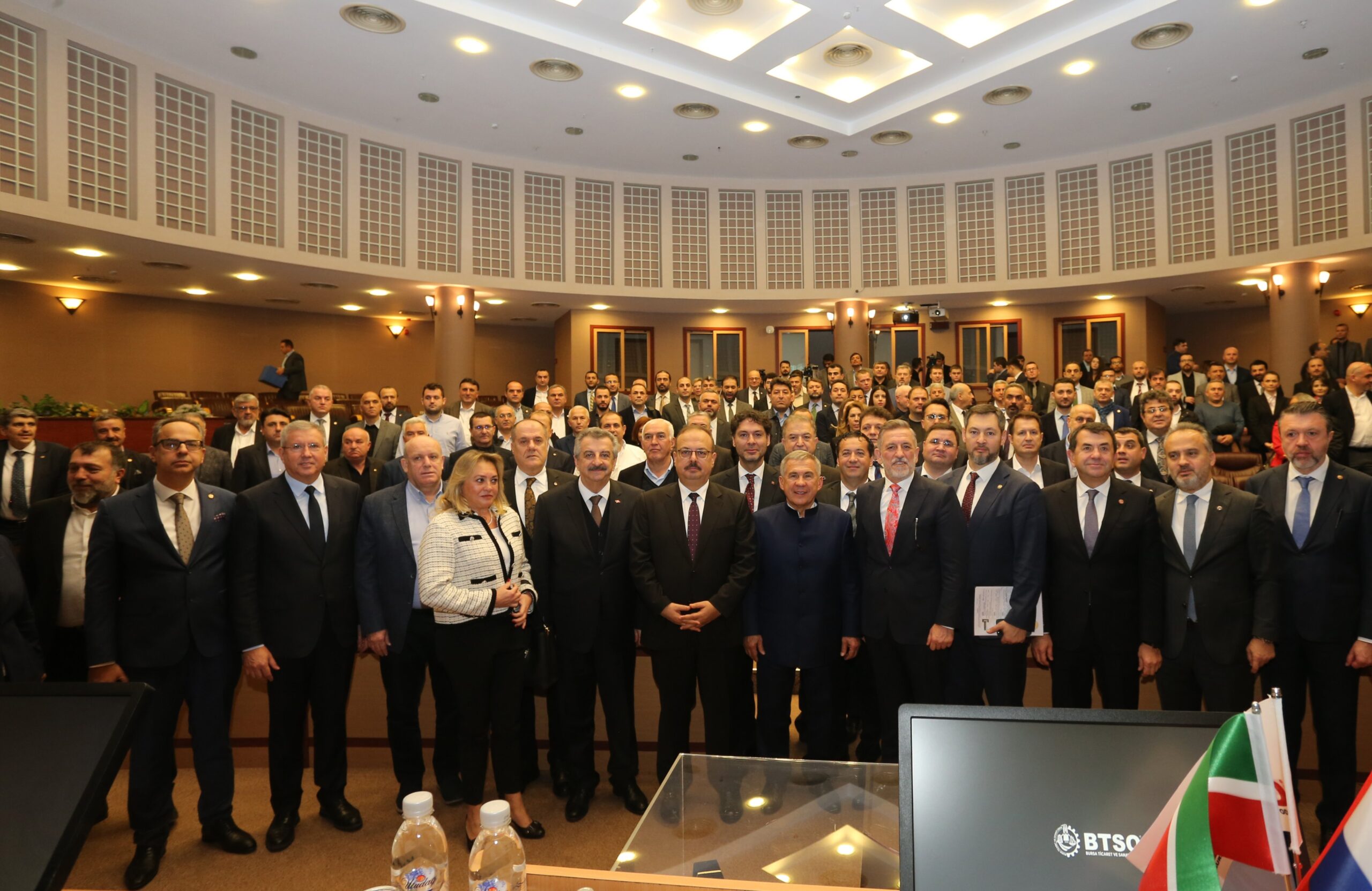 Oda Ana Hizmet Binası’nda BTSO Yönetim Kurulu Başkanı İbrahim Burkay ve Meclis Başkanı Ali Uğur’un ev sahipliğinde gerçekleştirilen toplantıya, Tataristan Cumhurbaşkanı Rüstem Minnihanov’un yanı sıra Bursa Valisi Yakup Canbolat, Sanayi ve Teknoloji Bakan Yardımcısı Hasan Büyükdede, Bursa Büyükşehir Belediye Başkanı Alinur Aktaş, Rusya Federasyonu Türkiye Ticaret Temsilcisi Aydar Gashigullin, Rusya Federasyonu İstanbul Başkonsolosu Andrey Buravov ile Tataristan’dan gelen firma temsilcileri ve BTSO üyeleri katıldı.