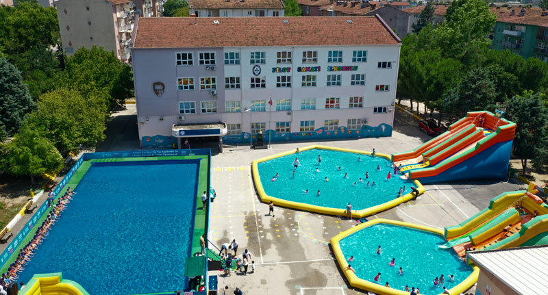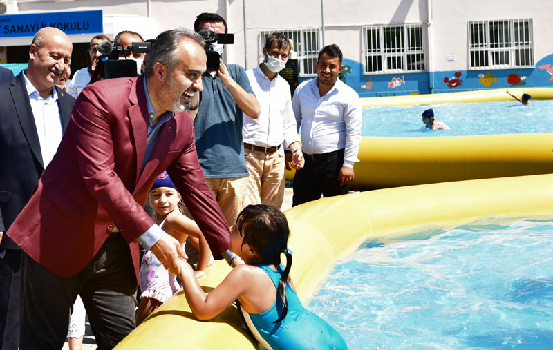 Pandemi nedeniyle uzun süre havuz ve denizlerden uzak kalan çocuklar ise okul bahçesinde havuzla buluşmanın keyfini çıkarırken, veliler de bu proje ile önemli bir ihtiyacın karşılandığını belirterek, Başkan Aktaş’a teşekkür etti.
