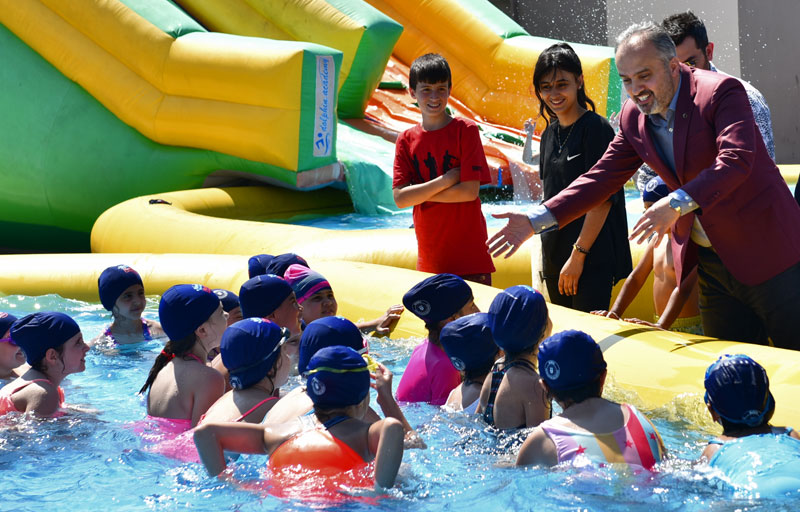 Gençlik ve Spor Hizmetleri Dairesi Başkanlığı koordinasyonunda hayata geçirilen ‘Neşeli Havuzlar, Mutlu Çocuklar’ projesi kapsamında Osmangazi’de Pilot Sanayi İlkokulu, Nilüfer’de Nesrin Fuat Bursalı İlkokulu, Yıldırım’da Hasan Ali Yücel İlkokulu, Mudanya’da Mütareke İlkokulu, Yenişehir’de Aydoğdubey İlkokulu, Orhangazi’de Orhangazi İmam Hatip Ortaokulu ve Mustafakemalpaşa’da Mustafakemalpaşa Ortaokulu bahçesine portatif yüzme havuzu kuruldu.