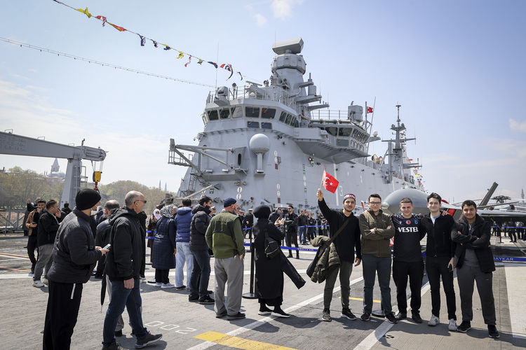 Türk donanmasının hizmetine 10 Nisan’da giren, hava, kara ve çıkarma araçlarının da yer aldığı dünyanın ilk silahlı insansız hava aracı (SİHA) gemisini görmek isteyen çok sayıda ziyaretçi, sabah açılış saatinde Sarayburnu Limanı’na geldi.