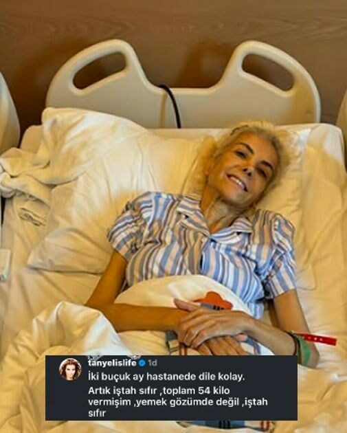 Asıl adı Öznur Kral olan oryantal Tanyeli’nin pankreas kanserine yakalandığı ortaya çıkmıştı. Birçok kez operasyon geçiren ünlü ismin tedavisi sürüyor. Bir süredir hastanede olan ve hasta yatağından paylaşım yapan Tanyeli, 2,5 ayda 54 kilo verdiğini açıkladı. Sosyal medya hesabını aktif olarak kullanan ünlü isim, son paylaşımında “2,5 ay hastanede dile kolay. Artık iştah sıfır, toplam 54 kilo vermişim. Yemek gözümde değil, iştah sıfır” ifadelerini kullandı. Tanyeli, birkaç hafta önce de hastane masraflarını Haluk Levent, Hakan Altun ve Avustralya’daki dostlarının ödediğini açıklamıştı.