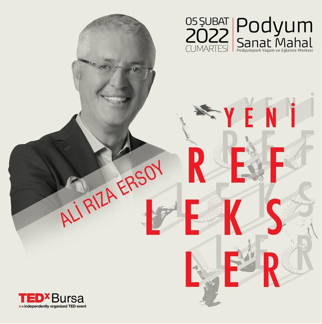 “Yeni Refleksler” temasıyla 5’incisi düzenlenecek ve Tedx Bursa severleri bir araya getirecek olan etkinliğin henüz tüm konuşmacıları açıklanmadı fakat duyurusu yapılan bu yılki partnerleri arasında; Uğur Batı, Ebru Baybara Demir, Tolga Akış, Gökçe Erhan ve Baran Yüksel yer alıyor.