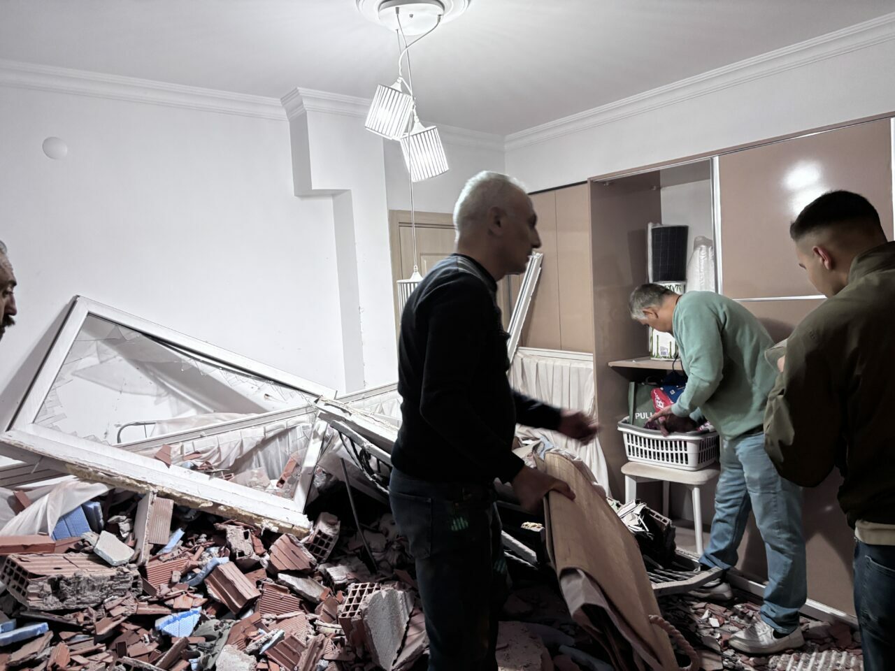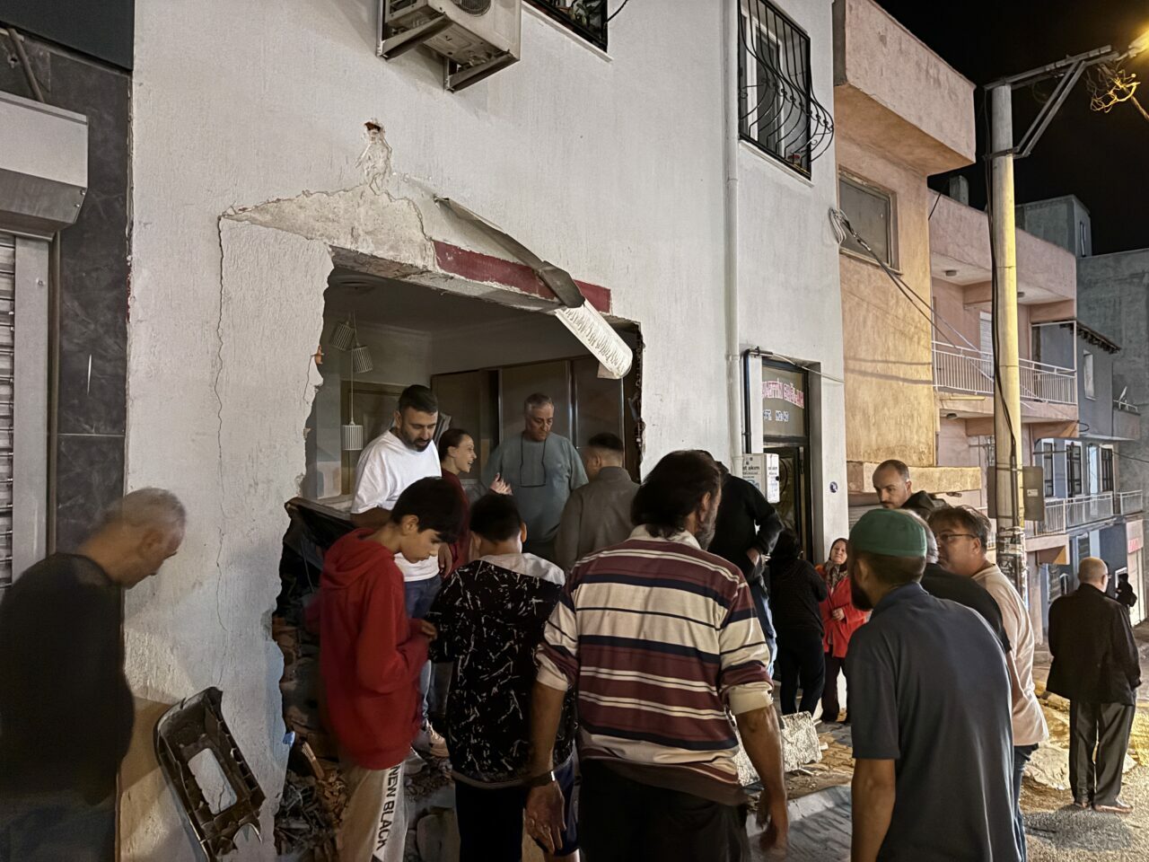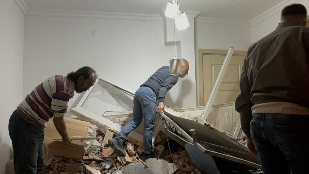 Çarpma nedeniyle evin oturma odasına ait duvarın bir bölümü yıkıldı.