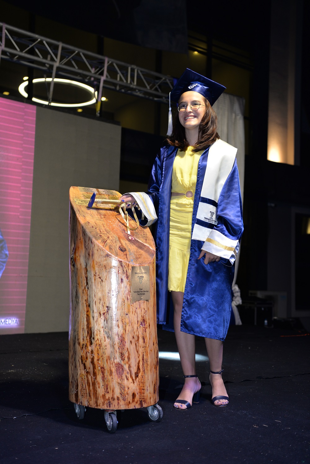 Plaketlerini ve ödüllerini Özel Teknoloji Fen Koleji Yönetim Kurulu Üyelerinden ve Okul Müdürlerinden alan okul birincileri, adlarının yazılı olduğu rozetleri Yaş Kütüğü’ne çakarak izleyenlerden büyük alkış aldı. Manevi değerlerimizin başında gelen Türk bayrağını ve okul flamasını alt sınıflara devreden öğrenciler, eğitimin devamlılığını sembolize eden devir teslim törenini gerçekleştirdi.