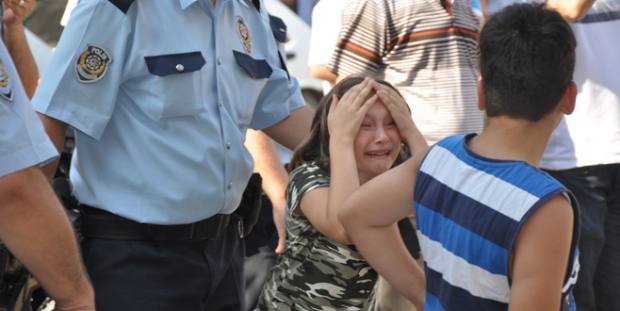 Müteahhit firma yetkililerine tepki gösteren iş yeri sahibi Memduh Onur’un 7 yaşındaki kızı korkuyu yaşadı. Yetkililerle tartışan babasını gören minik kız sakinleştirmek için gözyaşı döktü. Yaşanan olay emniyet ekipleri tarafından sonlandırıldı.