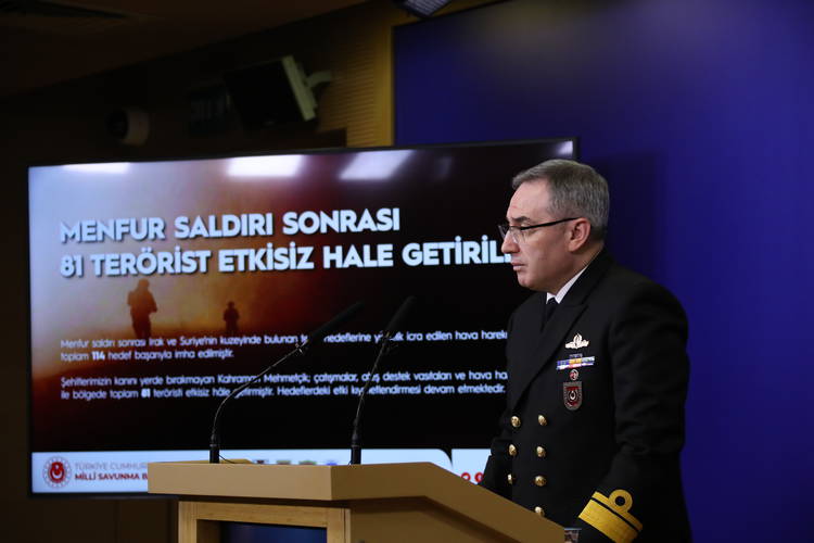 Tuğamiral Aktürk, şehitlerin kanını yerde bırakmayan Mehmetçik’in çatışmalar, ateş destek vasıtaları ve hava harekatlarıyla bölgede 81 teröristi etkisiz hale getirdiğini belirterek, şunları kaydetti: