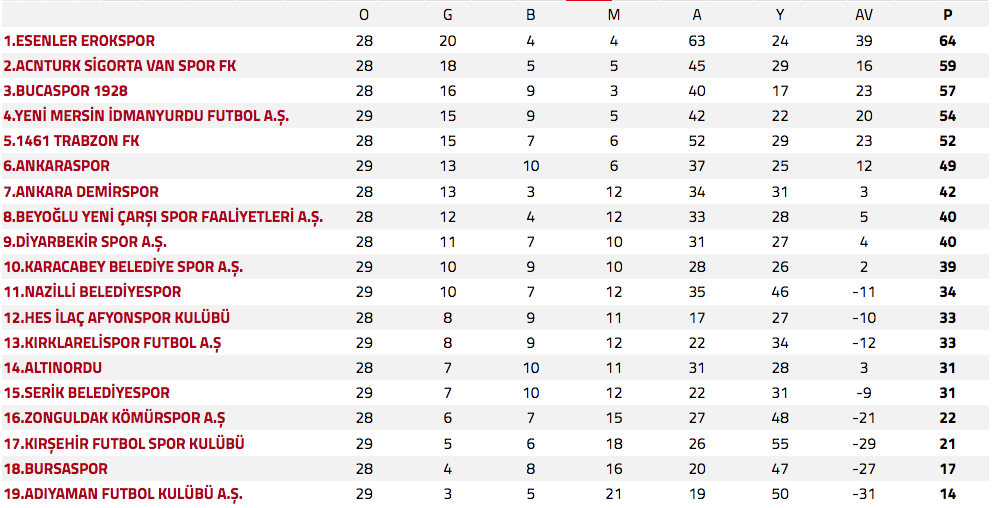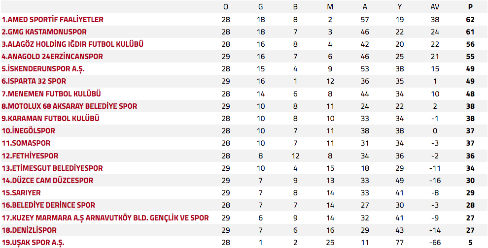 Puan durumu şöyle: