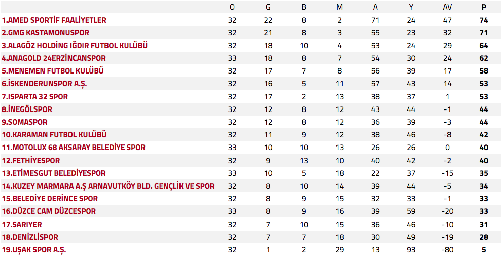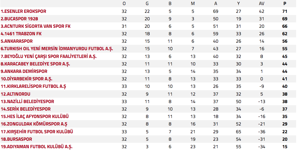 TFF 2. Lig’de Kırmızı ve Beyaz Grup’ta 34. hafta tamamlandı.