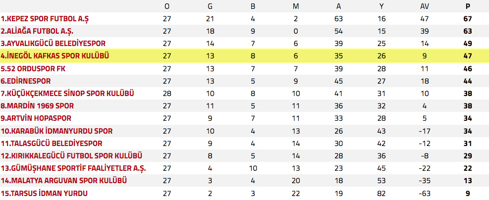Bu iki takımdan birinin doğrudan play-off 3. turuna yükseleceği grupta Karşıyaka, Turgutluspor, Efeler 09 Spor play-off oynamayı garantiledi. Play-off oynayacak son ekip, 36 puanlı Anadolu Üniversitesi veya 34 puana sahip Silifke Belediyespor’dan biri olacak.