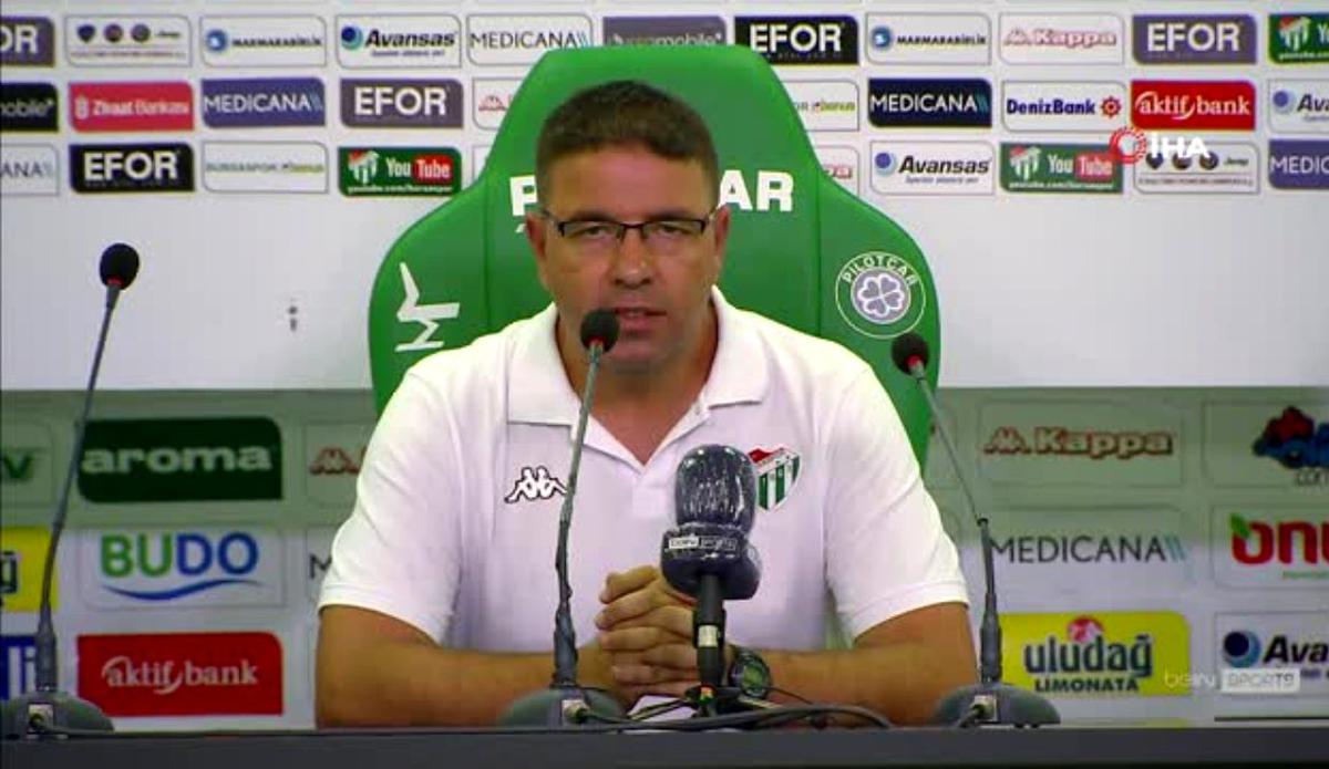 “Ritmimizi bulamadık. Oyunun ikinci bölgede oynanacağını biliyorduk. Rakip de biz de kabul ettik. Ataklarla pozisyon yaratmaya çalıştılar. Bir iki pozisyonları var. Kalecimiz oyunu ayakta tuttu. İkinci yarıda da oyun ikinci bölgede oynanmaya devam etti. Sanırım onların yaptığı organizasyon ve ataklara cevap veremedik. Hakemin performansı öne çıktı. Bursaspor’un futbolunu kötülemek amacıyla söylemiyorum. Verilen penaltı doğru değil. Çok basit. Maçı bize göre olmayan bir penaltıyla kaybettik. Kalecimizin performansı nereye gitti. Hakemlerin biraz daha dikkatli olması lazım. “