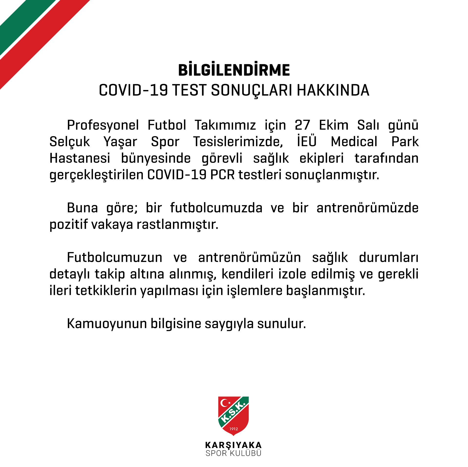 Buna göre; bir futbolcumuzda ve bir antrenörümüzde pozitif vakaya rastlanmıştır…