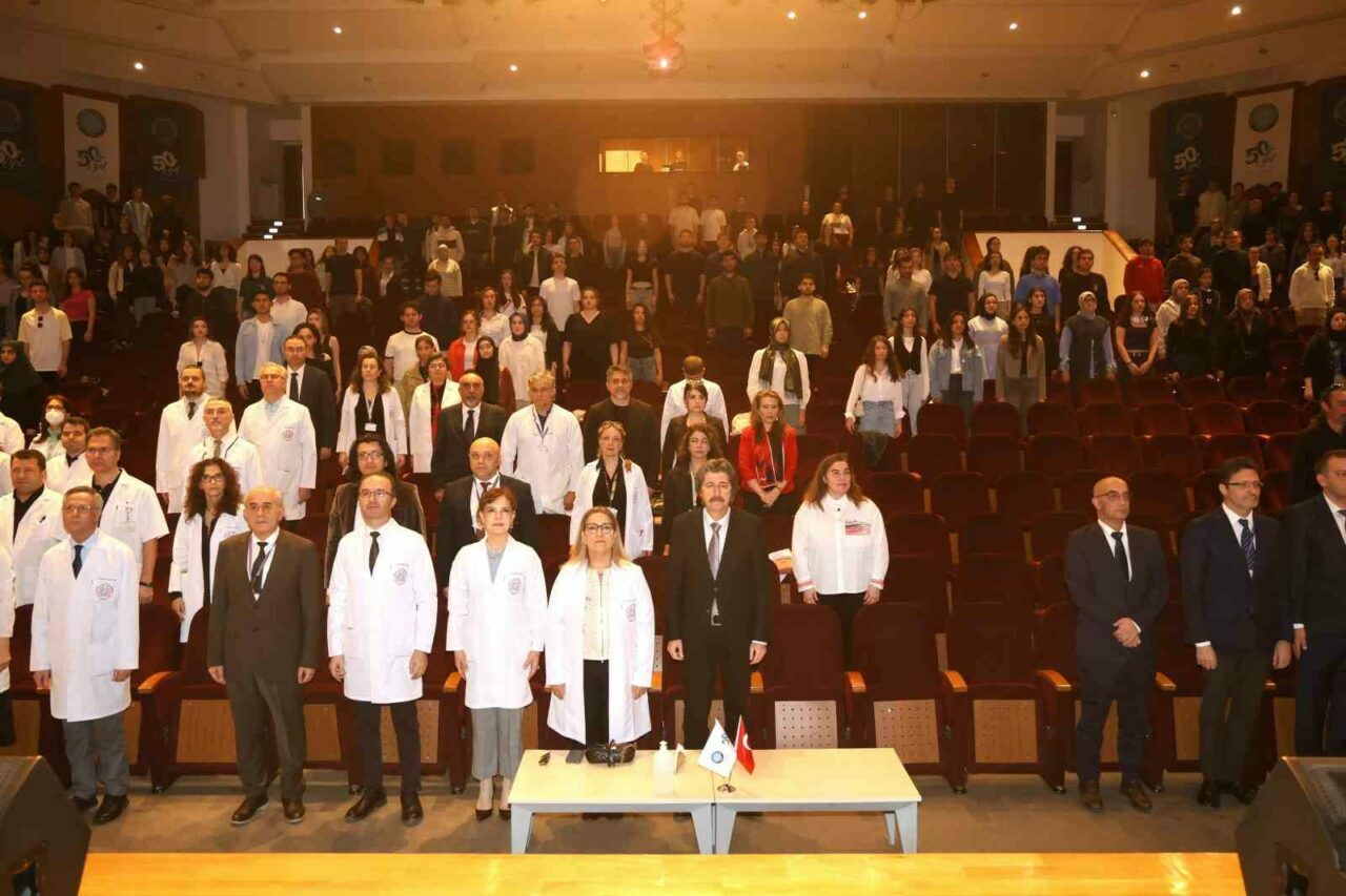 Konuşmasında öğrencilere seslenen Dekan Coşkun, “Sizler geleceğin hekimleri olarak bilimin ışığında ilerleyen, insan hayatına dokunmaya hazırlanan birer meşale taşıyorsunuz. Tıp eğitimi zorlayıcı olabilir. Bazen size tükenmişlik hissi verebilir ama unutmayın ki her zorluk sizi daha donanımlı, daha güçlü ve daha bilinçli bir hekim haline getiriyor. Gelecekte bir hastanın gözlerindeki umudu görmek, bir teşhisle hayat kurtarmak, bir dokunuşta şifa vermek işte tüm bu fedakârlıkların anlamı burada saklı. Mesleğinizde sabırlı olun. Her daim öğrenmeye açık olun ve en önemlisi vicdanınızı asla kaybetmeyin. Çünkü iyi bir hekim sadece bilgisiyle değil, merhametiyle ve insan sevgisiyle de fark kuruyor” ifadelerini kullandı.