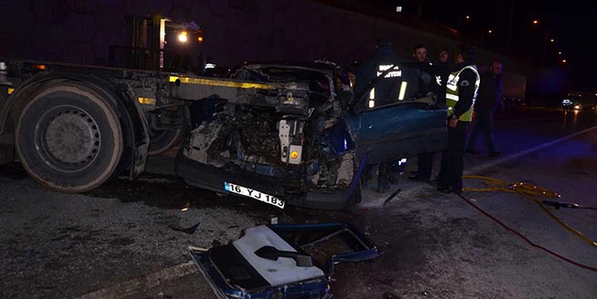 Alınan bilgiye göre, Kurtul mevkisinde Mehmet Ç. (26) idaresindeki 16 YJ 183 plakalı otomobil, Yeniköy kavşağında, kontrol noktasından dönen Ertan Y. idaresindeki 34 SL 9862 plakalı TIR’la çarpıştı.