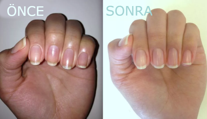 Bir çay kaşığı karbonatı bir çay kaşığı yoğurtla karıştırın. Tırnaklarınızı bu karışımla ovun ve hemen yıkayın. Yalnız dikkat; bu yöntemi haftada 3 günden fazla uygulamayın.