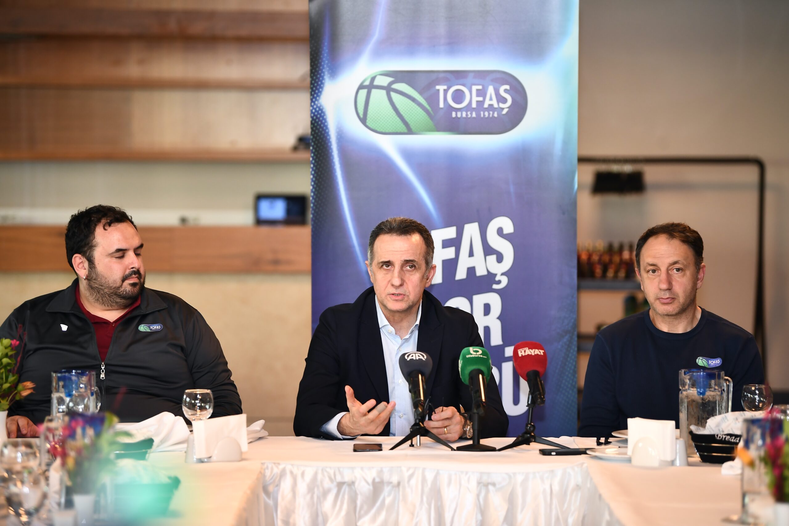 Türkiye Sigorta Basketbol Süper Ligi’nde normal sezonu, son 9 haftada aldığı 8 galibiyetle (toplamda 15 galibiyet-15 mağlubiyet) 7. sırada tamamlayarak play-off’lara katılma hakkı kazanan TOFAŞ’ta Genel Menajer Tolga Öngören ve Başantrenör Orhun Ene, Fenerbahçe Beko ile oynanacak çeyrek final serisi öncesi basın mensuplarıyla bir araya geldi.
