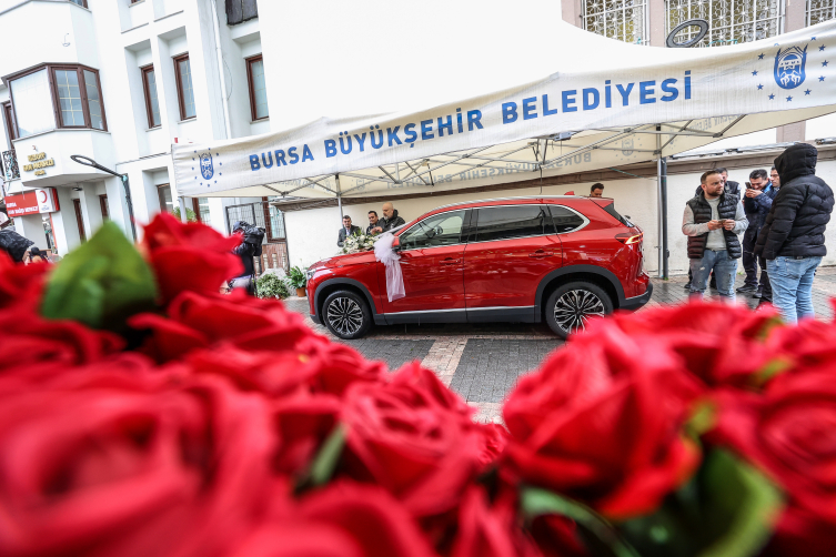 Bunun üzerine Bursa Büyükşehir Belediye Başkanı Alinur Aktaş, bir çiçekçiye Togg’u süsleterek gelin arabası yaptı ve direksiyona geçti.