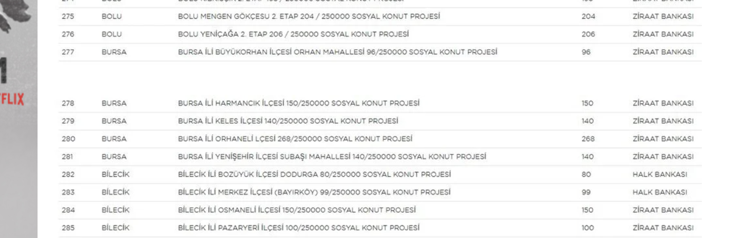 240 ay vadeli dairelerin satış fiyatları 608 ve 850 bin lira arasında değişiyor. İstanbul için hane gelir sınırı 18 bin lira, Bursa’nın da aralarında bulunduğu diğer şehirler için 16 bin lira olarak açıklandı.