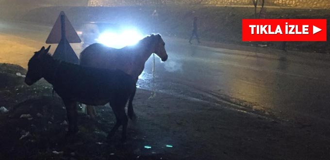 Burası trafiğin en işlek olduğu Alanyurt yolu. Ancak başı boş atlar aç oldukları için yol kenarında yiyecek ve otlanacak yer arıyor. Bitkin düşen atlar ve eşek soğuk havada zor şartlar altında karınlarını doyurmak peşinde. Bazen yolun ortasına kadar gelen atlar trafiği alt üst ediyor.
