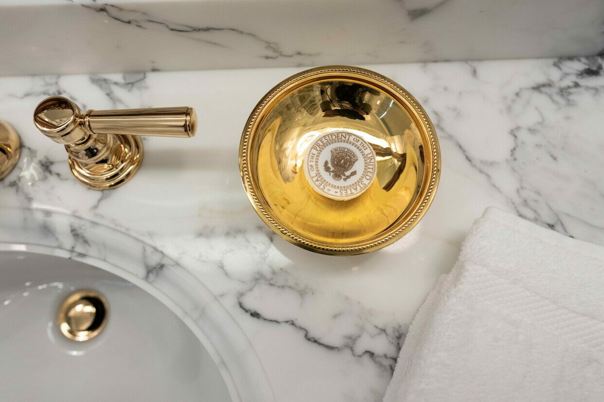 ABD Başkanı Donald Trump, sosyal medya hesabından yaptığı paylaşımda, “Beyaz Saray’daki Lincoln Banyosu’nu yeniledim. Banyo 1940’larda, Lincoln dönemi için hiç de uygun olmayan art deco yeşil fayans tarzında yenilenmişti. Ben siyah beyaz cilalı heykel mermeri kullandım. Bu, Abraham Lincoln dönemi için çok uygundu ve aslında orijinal mermer de olabilirdi” ifadelerini kullandı. Paylaşımı ile birlikte Trump, ‘Yenilenmiş Lincoln Banyosu’nun görsellerini de paylaştı. Görsellerde, banyoda kullanılan altın tonları dikkat çekti.