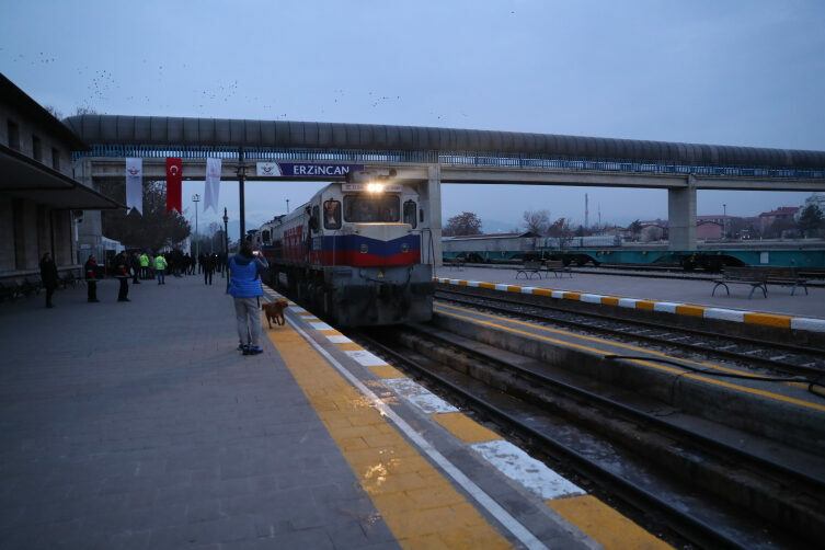Sabahın ilk ışıklarıyla Erzincan Tren Garı’na ulaşan yolcuları, Erzincan Valisi Hamza Aydoğdu, Belediye Başkanı Bekir Aksun, Erzincan Binali Yıldırım Üniversitesi Rektörü Prof. Dr. Akın Levent ve beraberindeki kamu kurum müdürleri karşıladı.