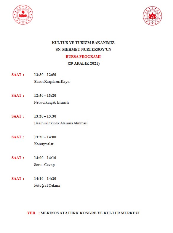 Kültür ve Turizm Bakanı Mehmet Nuri Ersoy Bursa’ya geliyor… Bursa Valiliği, Ersoy’un Bursa’daki programını açıkladı…