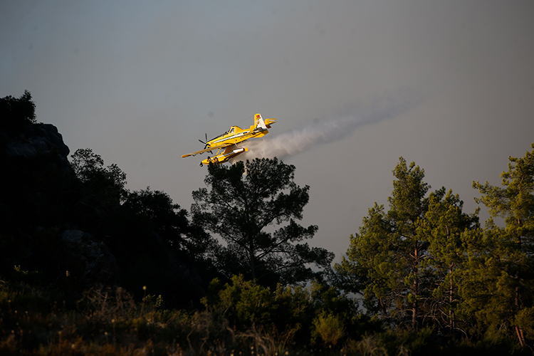 Antalya’nın Kemer ilçesindeki ormanlık alanda akşam saatlerinde başlayan ve gece boyunca devam eden yangına, sabahın ilk ışıklarıyla havadan müdahale de başladı.