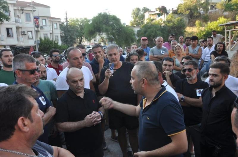 Datça Emniyet Müdürü Toygun, burada bir kez daha kalabalıkla konuşarak dağılmaları konusunda ikna etmeye çalıştı.