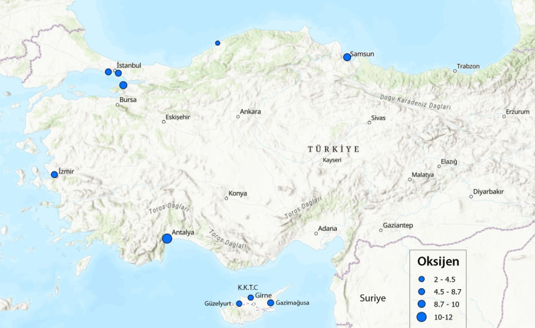 Raporda, deniz pH durumunun uzun süre ölçüldüğü takdirde iklim değişiminin okyanus asitlenmesi etkisi konusunda da bilgi verici olacağına işaret edilerek, “Gündüz ölçülen oksijen değerleri, yüzey sularında beklendiği üzere üst seviyesinde 6-7 mg/L olduğu görülmüştür.” ifadelerine yer verildi.