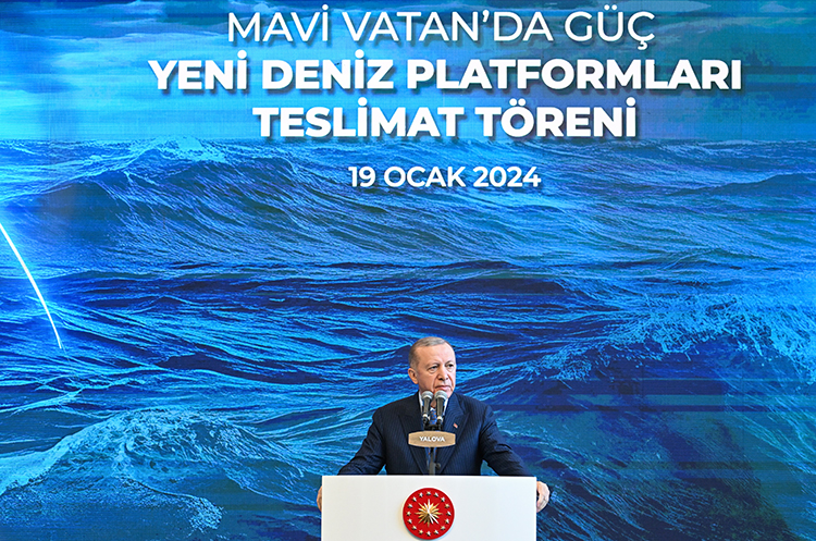 Cumhurbaşkanı Recep Tayyip Erdoğan, Yalova’daki Sefine Tersanesi’nde düzenlenen Mavi Vatan’da Güç: Yeni Deniz Platformları Teslimat Töreni’nde yaptığı konuşmada, katılımcıları selamlayarak, donanmanın caydırıcılığını daha da artıracak projelerin teslim töreni vesilesiyle bir arada olduklarını söyledi.