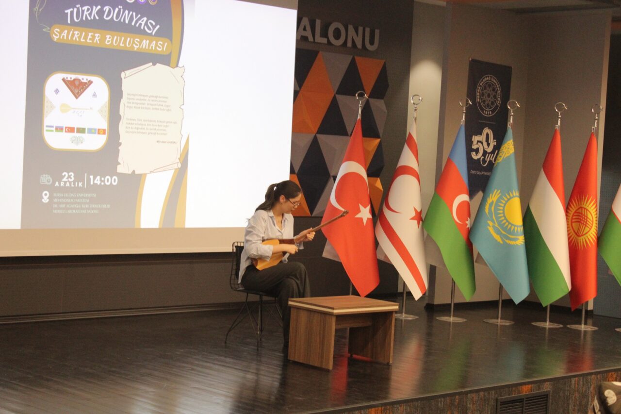 Şiir dinletilerinin yanı sıra Türk dünyasının müzikal zenginliği de sahneye taşındı. BUÜ mezunu ve Bursa Büyükşehir Belediyesi Orkestra Şube Müdürlüğü Türk Halk Müziği Bölümü saz sanatçısı Alim Hüseyinoğlu’nun seslendirdiği türkülerin ardından; BUÜ Eğitim Fakültesi Kazakistan uyruklu öğrencisi Ayşe Yersinbek Kazak millî sazı dombra, BUÜ mezunu Çolpan Kambarova ise Kırgız millî sazı komuz ve Türk dünyasına ait eserlerle etkinliğe katıldı. Ayrıca BUÜ Azerbaycan Kültür ve Sanat Topluluğu üyelerinden Kemale Memmedova ve Amal Babayev, sergiledikleri Azerbaycan halk oyunları ile beğeni topladı.