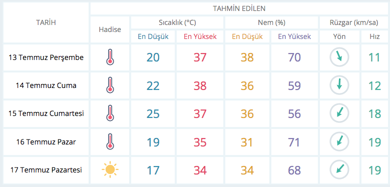 BURSA 5 GÜNLÜK TAHMİN
