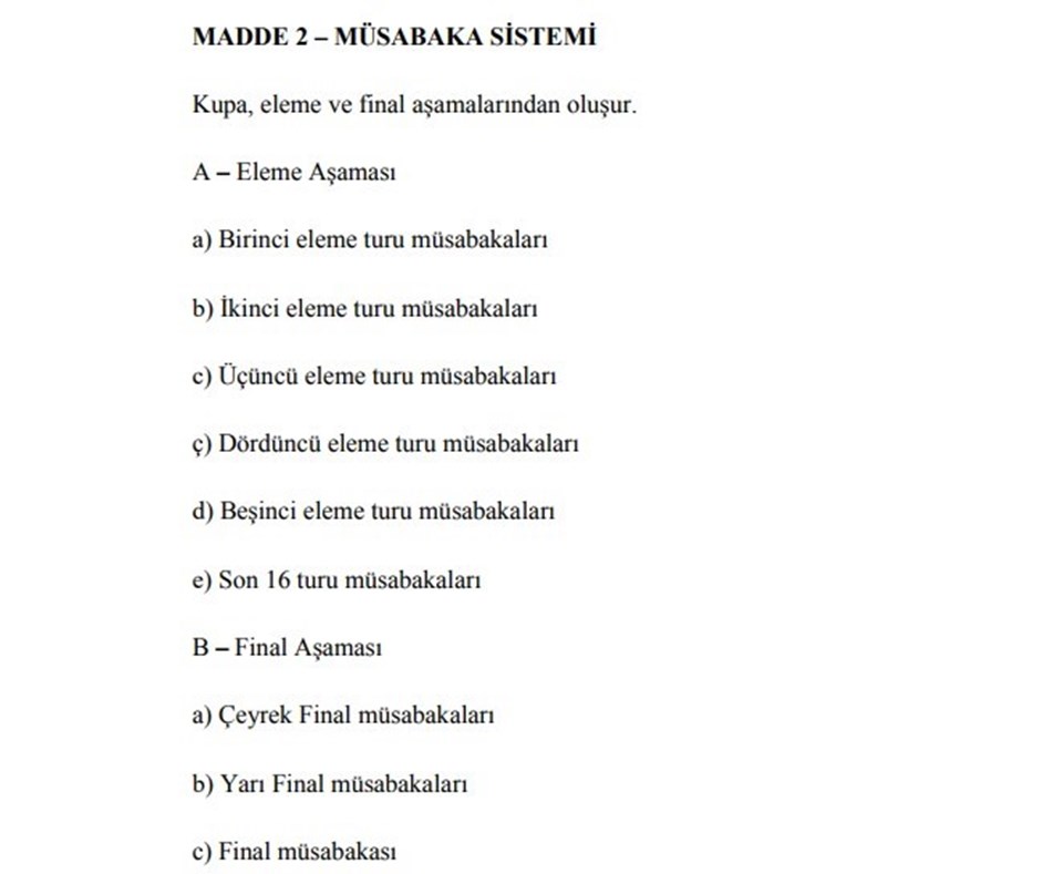 Ana Sayfa › Final › Türkiye Kupası’nda format değiştiTürkiye Kupası’nda format değişti Yeni sezondan itibaren Türkiye Kupası’nda tüm kupa, eleme sistemi ile oynanacak. Giriş: 08-08-2017 17:42Kaynak: Final ABONE OL + - Türkiye Kupası’nda format değişikliğine gidildi. Yeni yıldan itibaren grup maçları sistemi kaldırıldı. Tüm kupa, eleme sistemi ile oynanacak. HABERİ PAYLAŞ